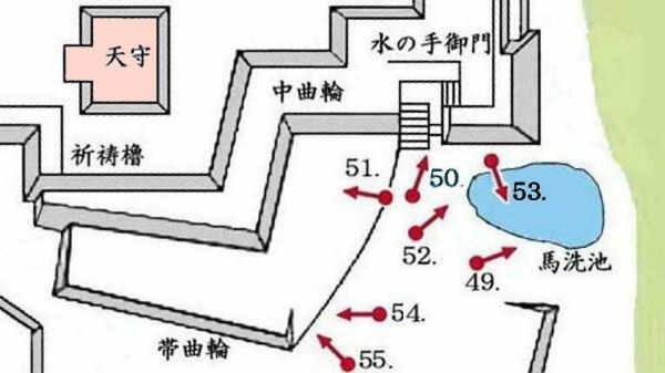 51. 腰曲輪 水の手御門跡南の石垣 (動画から)