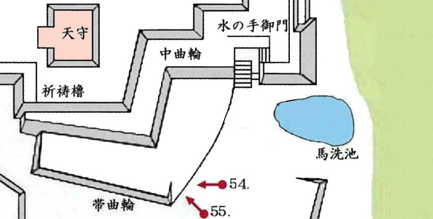 53. 馬洗池東の二の丸帯曲輪北端の石垣