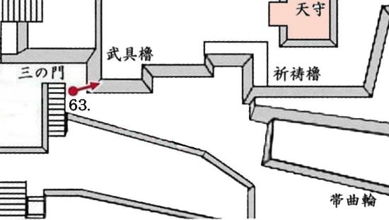 63. 26.と同じく二の丸上の段 三の門跡からの本丸武具櫓台と天守閣