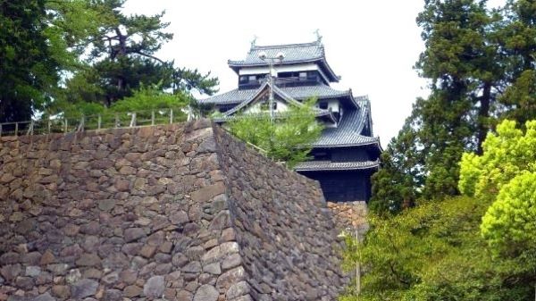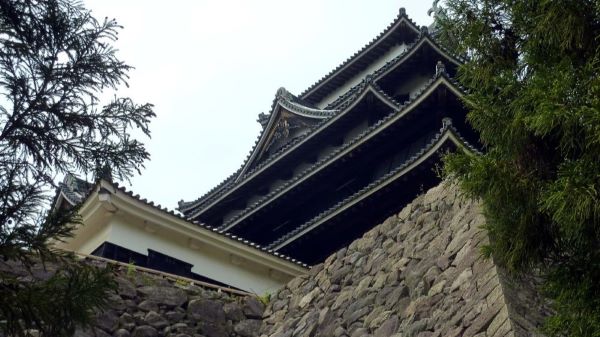 57. 二の丸帯曲輪からの本丸祈祷櫓台と天守閣 (動画から)