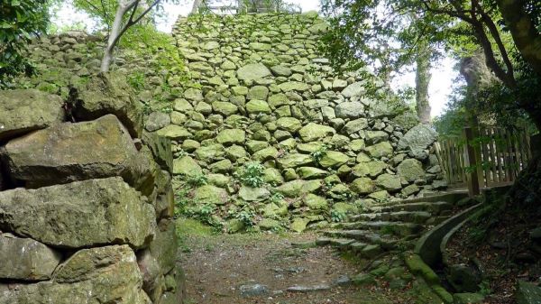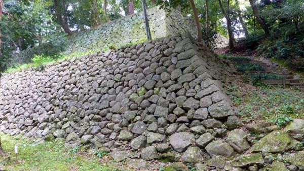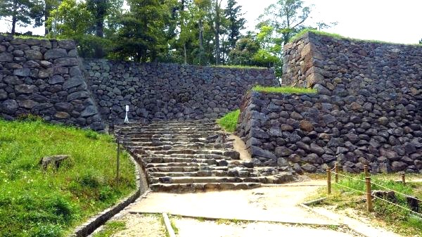 44. 腰曲輪北面の二段石垣と奥去口門への石段