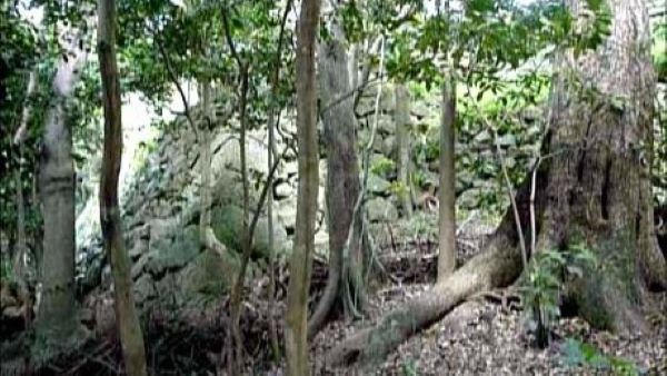 36-2. 本丸西面帯曲輪南端の石垣 (動画から)
