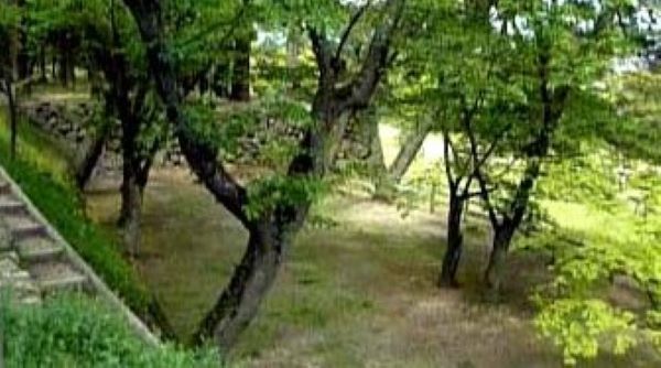 30. 二の丸上の段 二の門内跡と北側石垣 (動画から)
