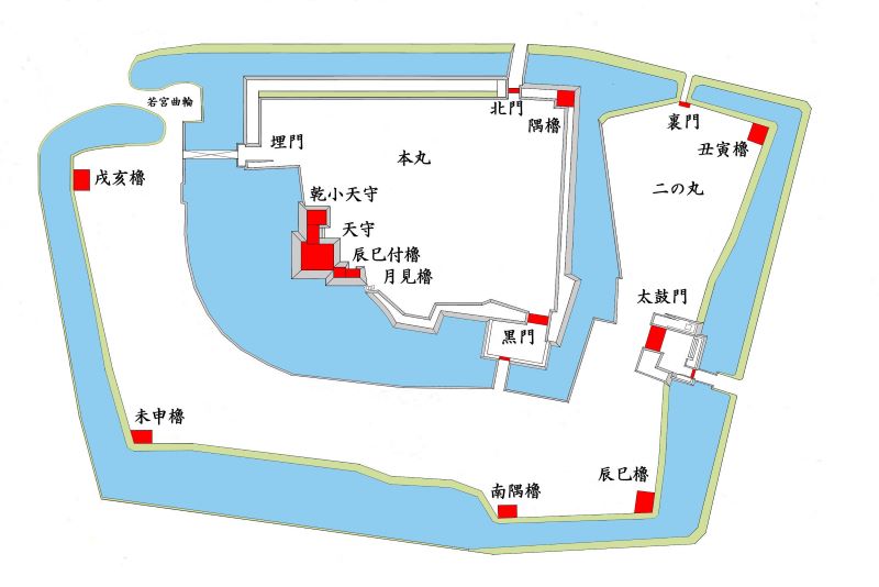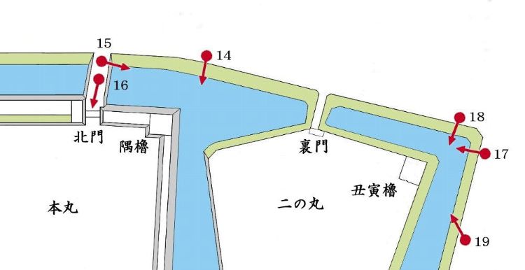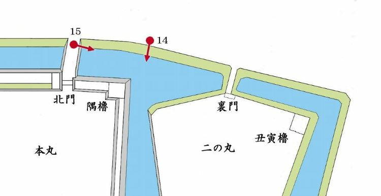 本丸北門・二の丸丑寅櫓台周辺