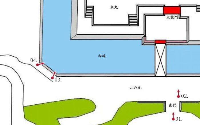 ニの丸土塁埋門から北不明門周辺