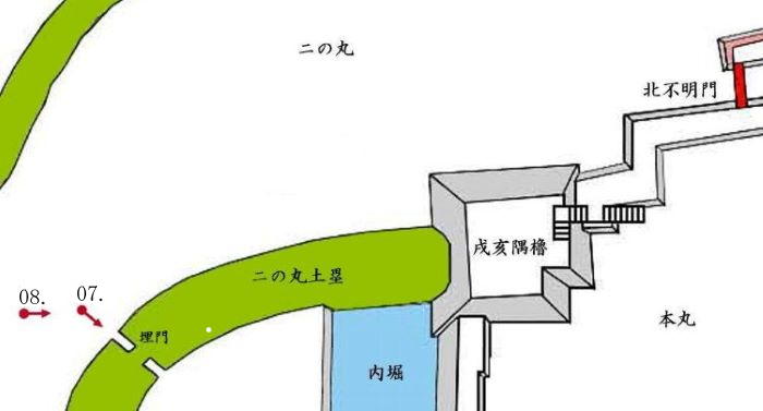 08-1. 二の丸土塁埋門と本丸戌亥隅櫓台