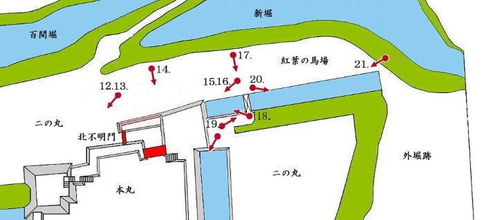 本丸北不明門から紅葉の馬場周辺