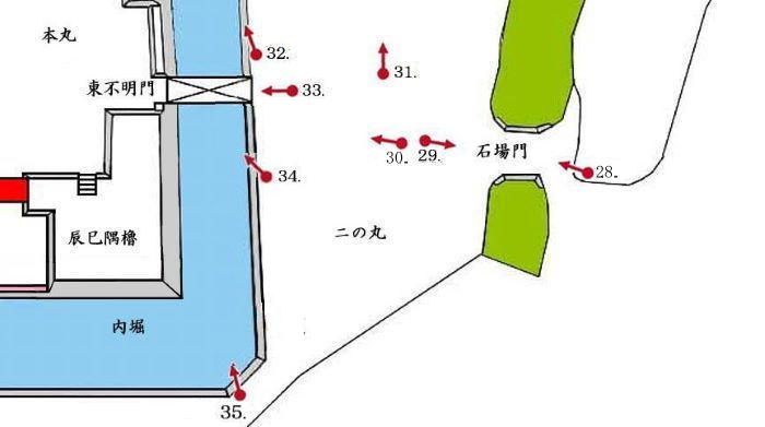 二の丸石場門から本丸東不明門周辺