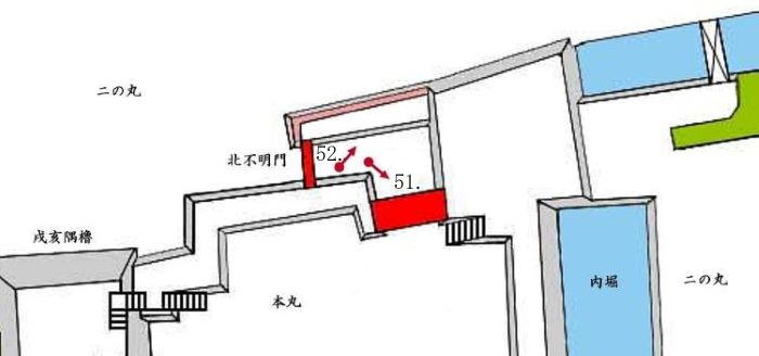 52. 本丸北不明門内の枡形