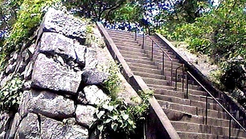 62. 敵見櫓台(二重)よりきたい丸西面への石段 (石垣改修後無くなった)