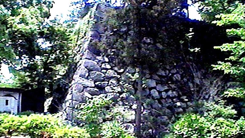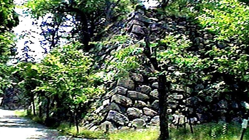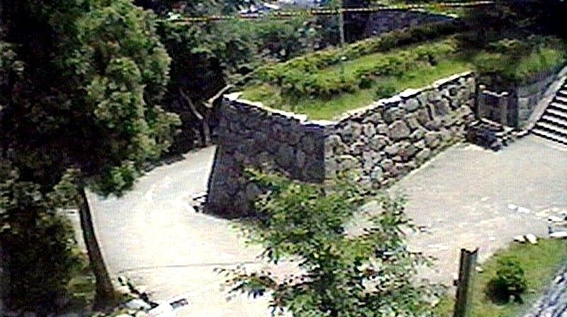 80. 二の丸からの裏一の門跡と本丸下段 太鼓櫓台(二重)
