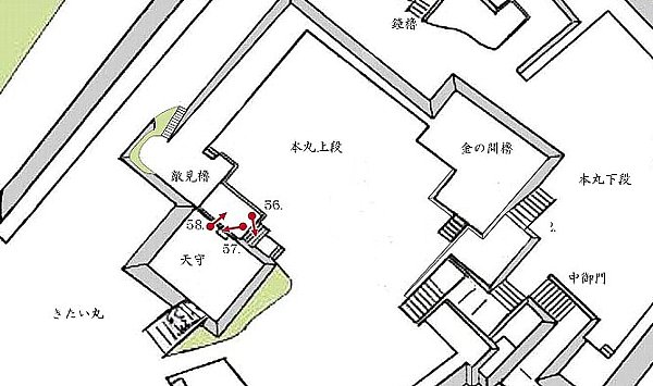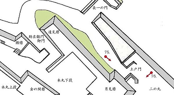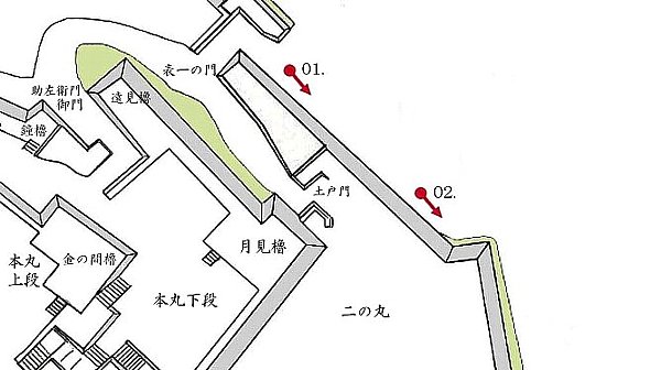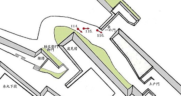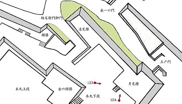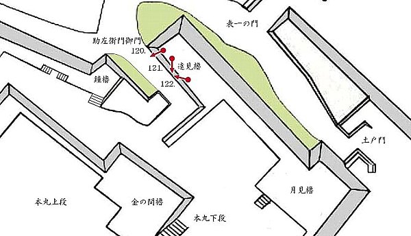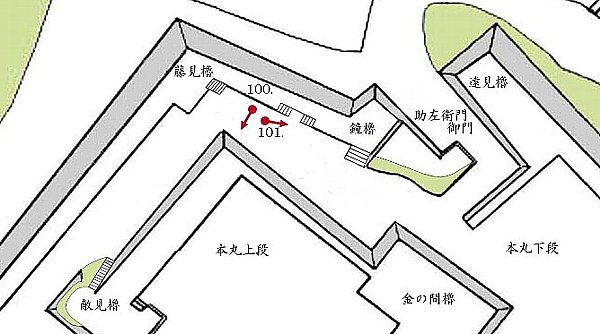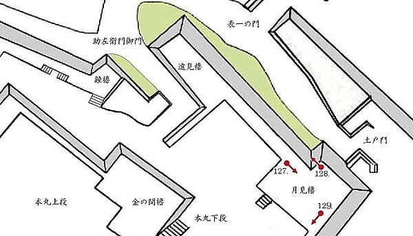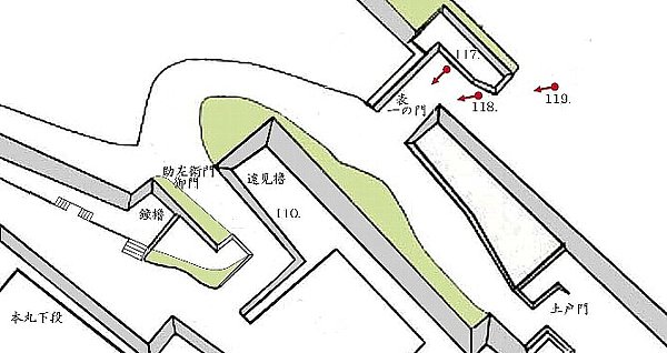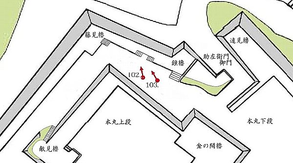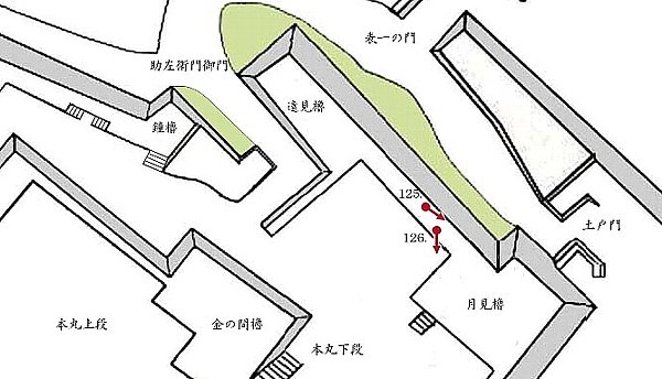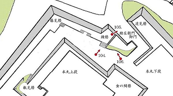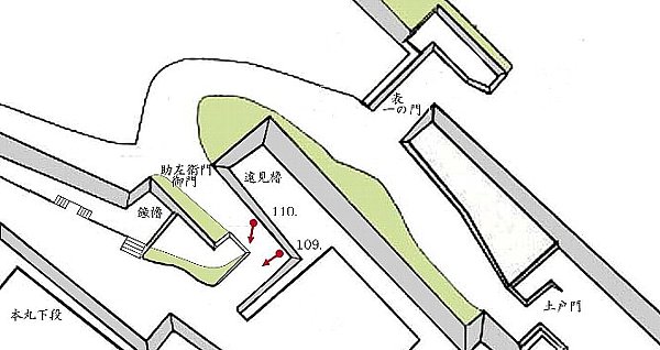 109. 助左衛門御門内と本丸下段北面 金の間櫓台(二重)