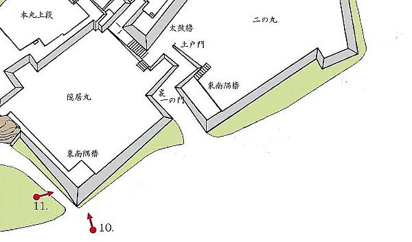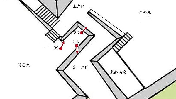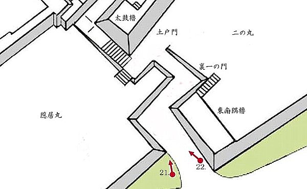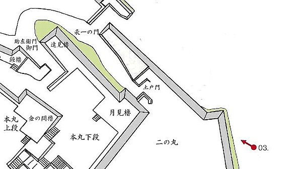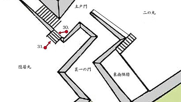 29-2. 二の丸(南) 土戸門跡と本丸下段 太鼓櫓台(二重)