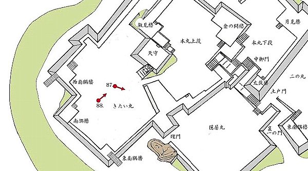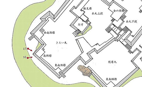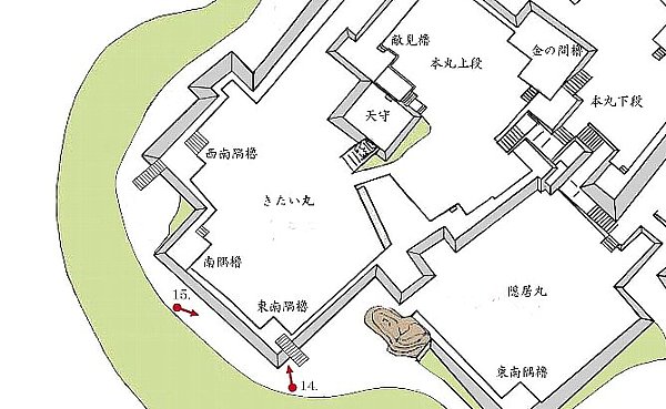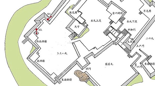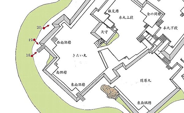 18. きたい丸 西北隅櫓台に取付けられていた石段南面