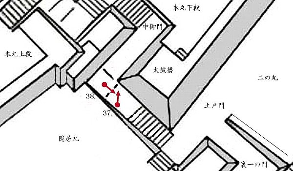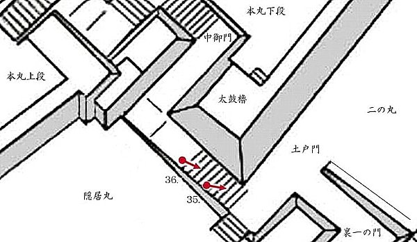 37. 太鼓櫓台(二重)下から中御門跡へ