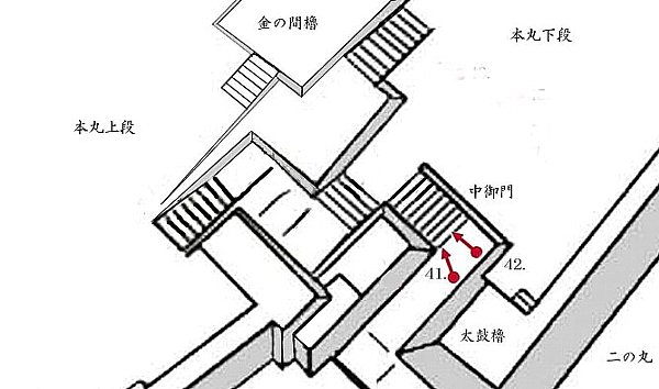 42. 中御門跡 左本丸上段へ 右本丸下段へ
