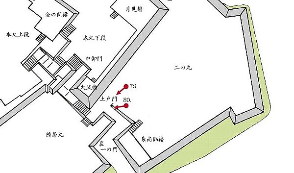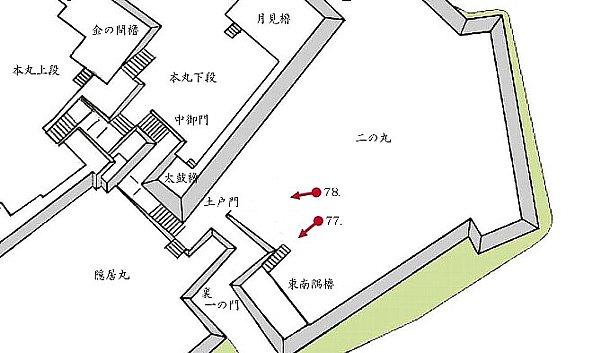 78. 二の丸(南) 土戸門跡と本丸下段 太鼓櫓台