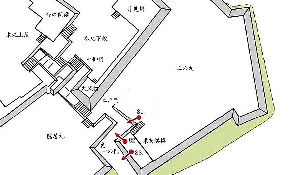 79. 二の丸(南)土戸門跡からの隠居丸門