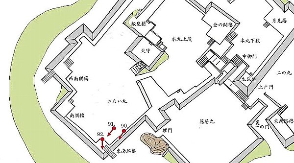 92-2. きたい丸南西角隅櫓台に造られていた石段
