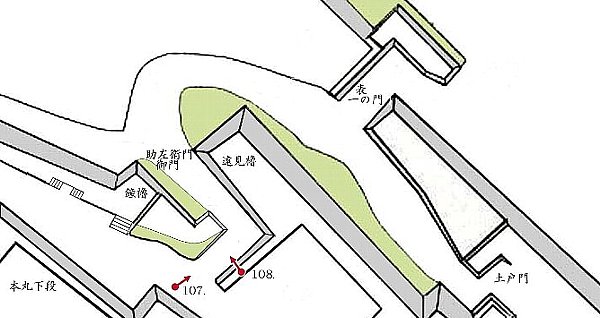 108. 助左衛門御門内と右の遠見櫓台(二重)