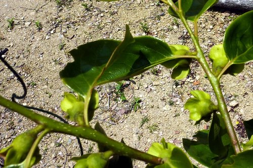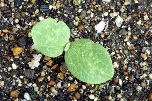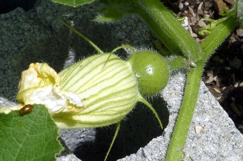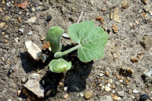 イチジク。 畑に植えたカボチャの種から出た苗。