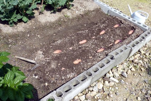 隼人イモ苗25本を磯辺町の農業屋で購入し植付けた。