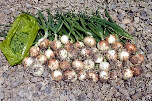 防虫スプレーが利いたのか害虫 タマネギ−26個、ソラマメ−50個、ジャガイモ550g