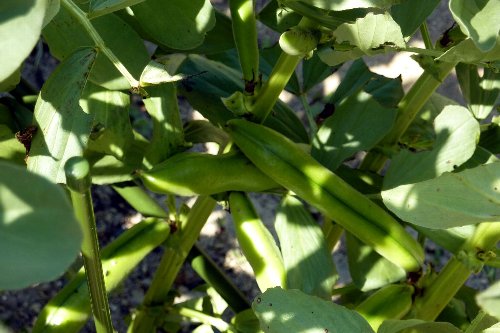 ソラマメの実が大きくなりだした。下を向いたら収穫。