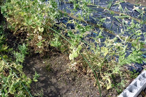 スナックエンドウは終了。 ジャガイモ(メイクイン)が倒れだした。