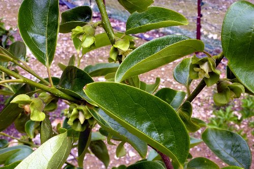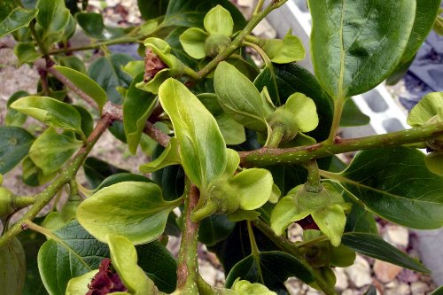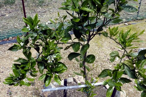 柿とミカンの実は去年みんな落ちてしまったが今年はどうか。大きくなっている。