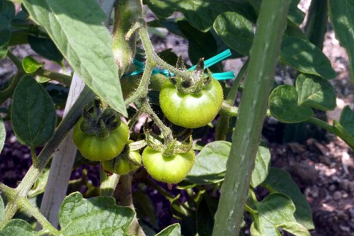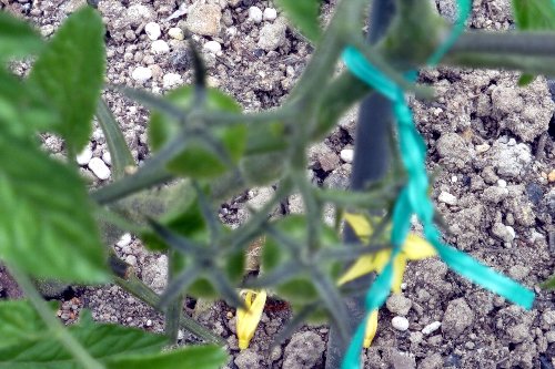トマトにも実が付きだした。 挿木に失敗したので再度実行。