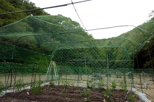 上部の網は5m×4mを二枚使用。去年の一枚に今年一枚購入(一枚2000円高い!)