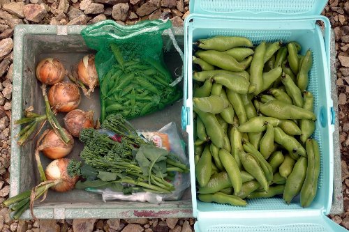 タマネギ-28個、ソラマメ-80本、ブロッコリー-2個。