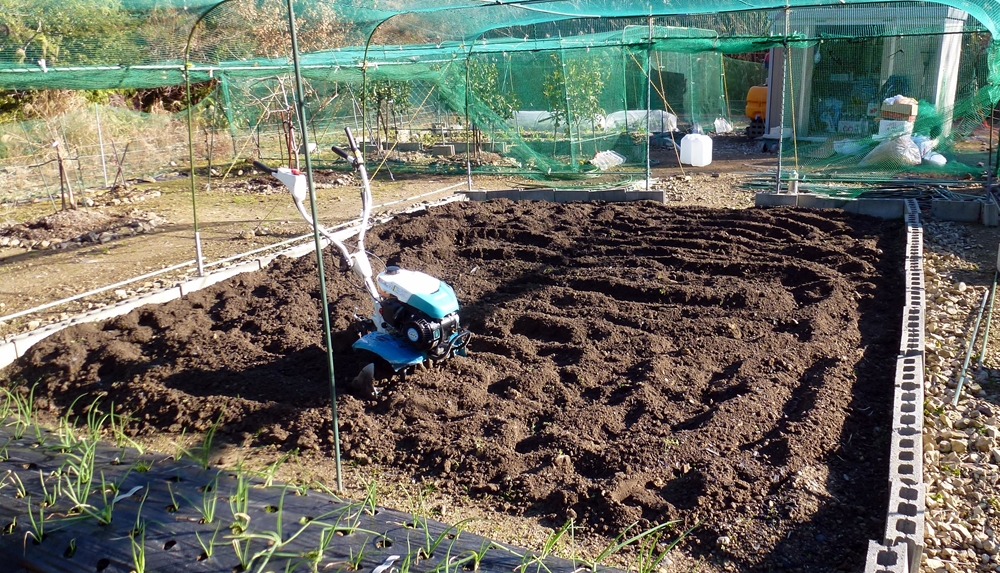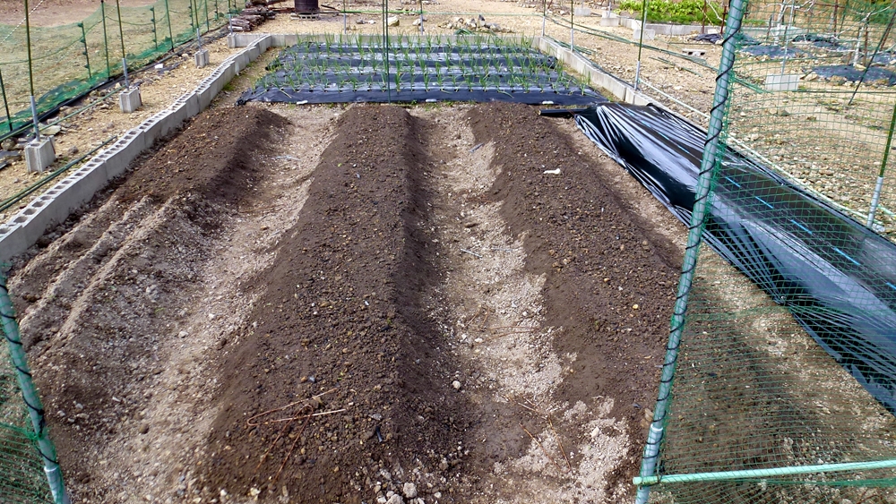ジャガイモの準備のためタマネギ植付け時に一度耕運機をかけた予定の場所