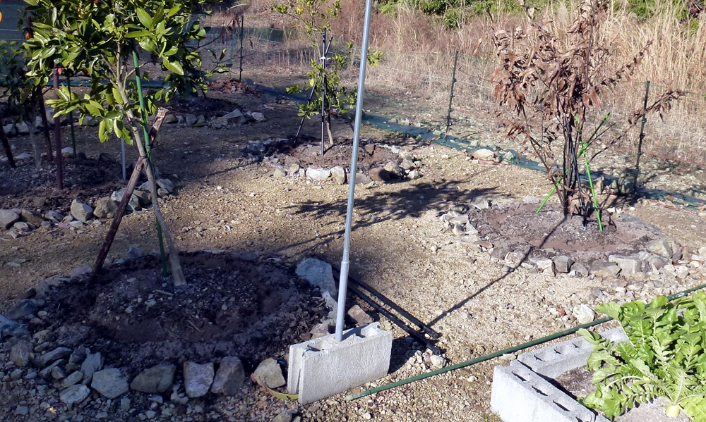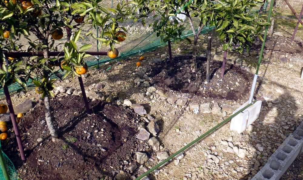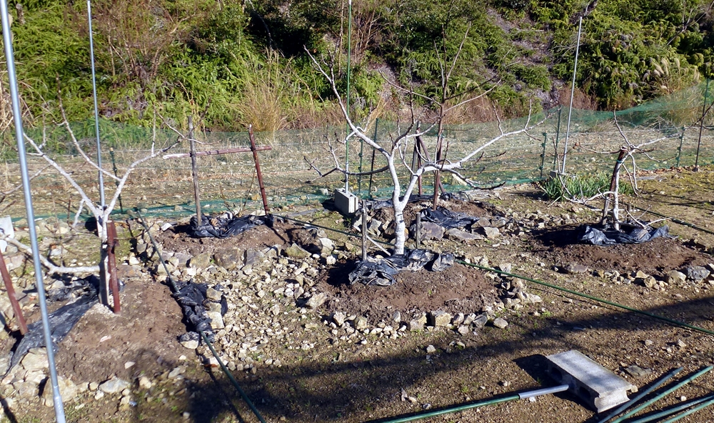 柑橘類、イチジク、栗、柿などには鶏糞の肥料を施した。