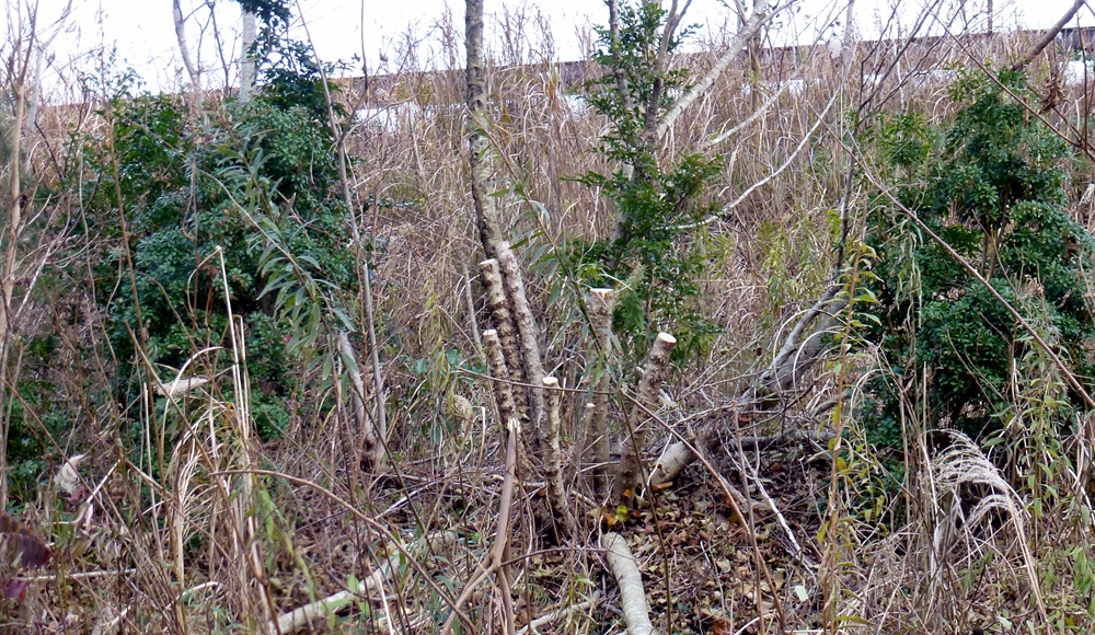 バイパス法面の雑木などが何本か切り倒されている。誰が切ったのかは不明。