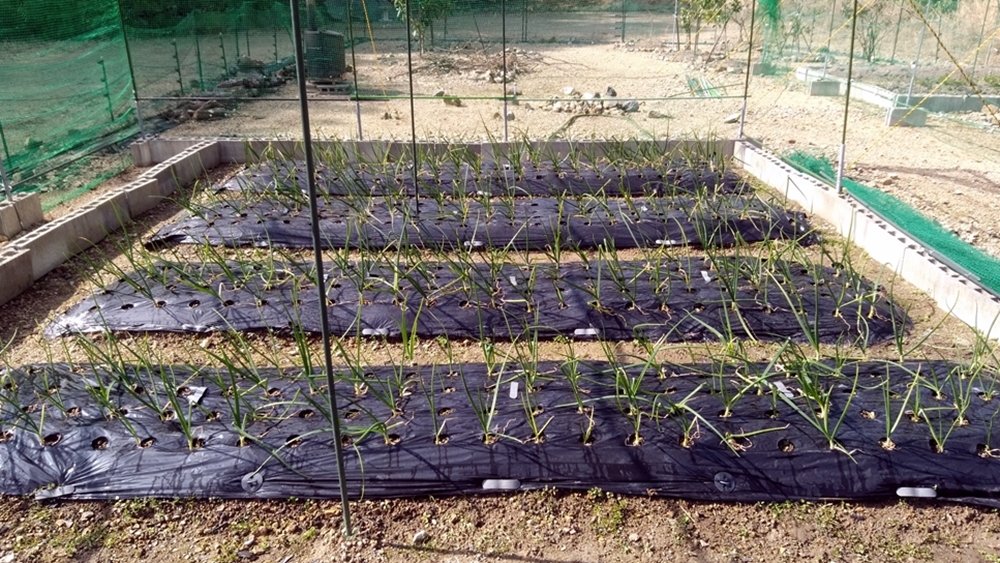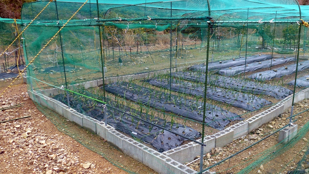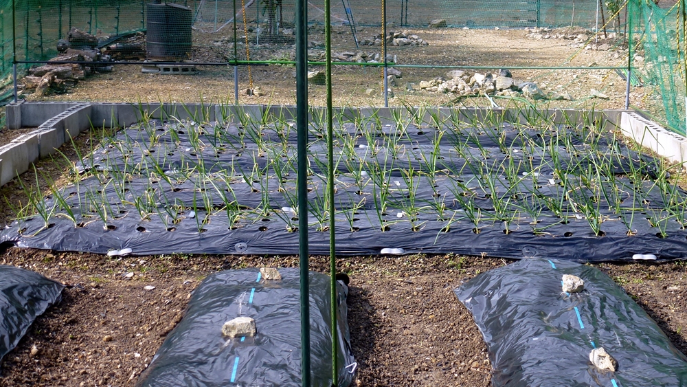 タマネギは寒さのためかまだ弱弱しいが植えた本数近くは育っていそう。