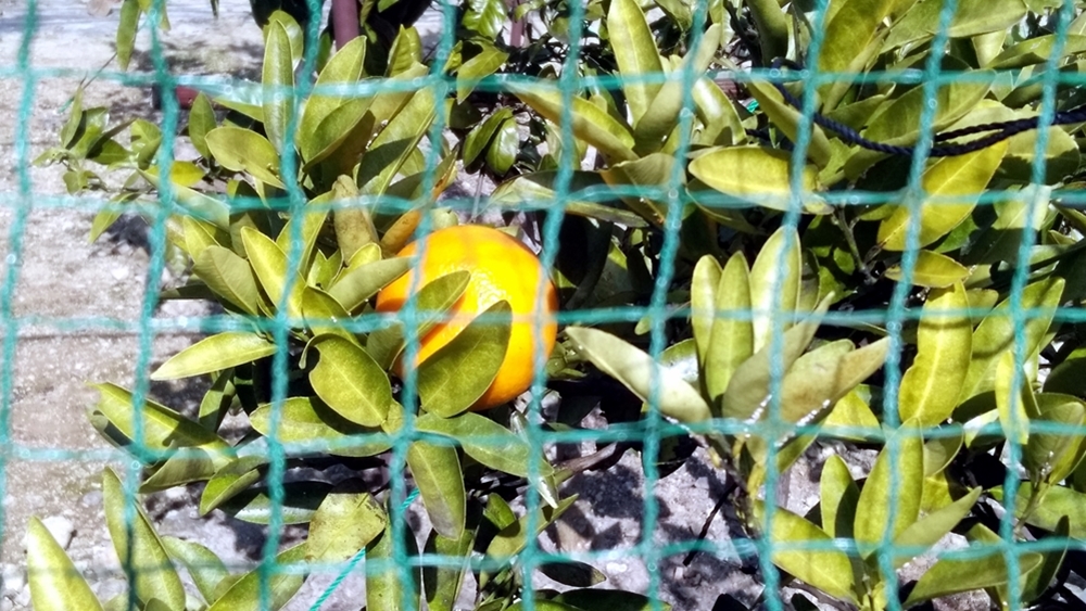 昨年8月に十ヶ月がかりで修復した網掛けが10月初めの台風24号でイチジクの網掛