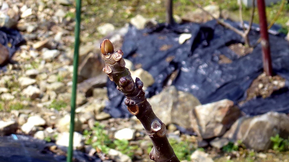 テントを張ったマルチを破りジャガイモの芽を出した。