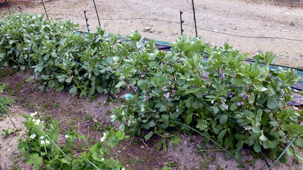 ソラマメも背が高くなりだしもうすぐ支えが必要になる。