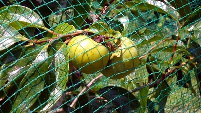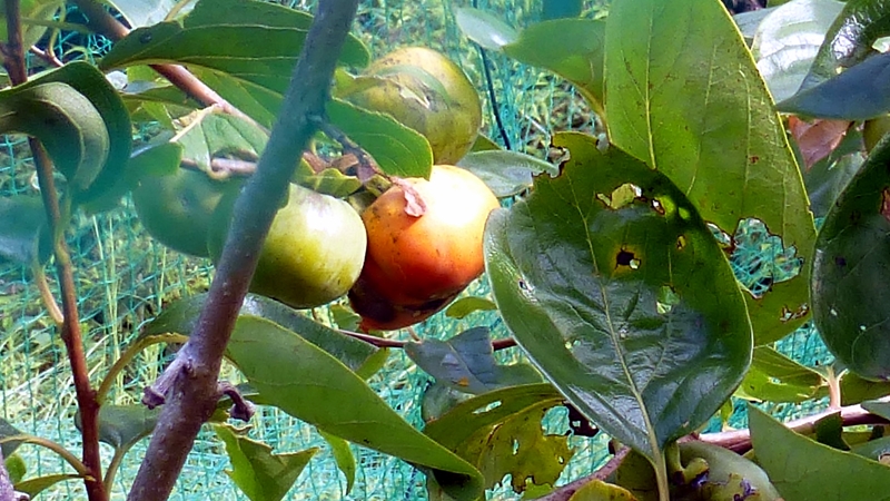 柿がつぎつぎ色づいてきたが、網を掛けたにもかかわらず鳥が