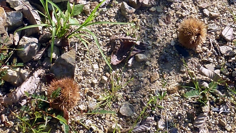 落ちていて、割ってみると大小の栗が少々出てきた。 .