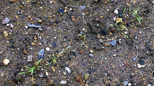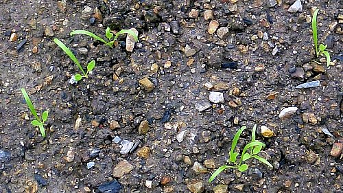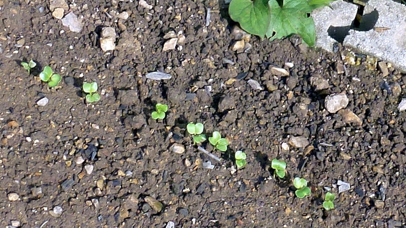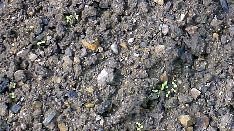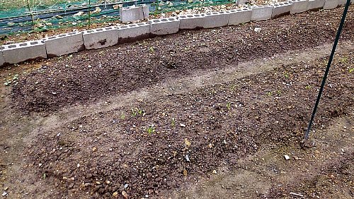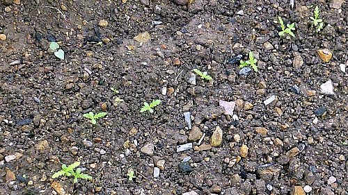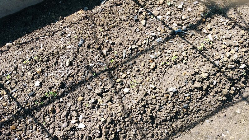 冬野菜種蒔き後10日の状況で、遅かったニンジンの芽も