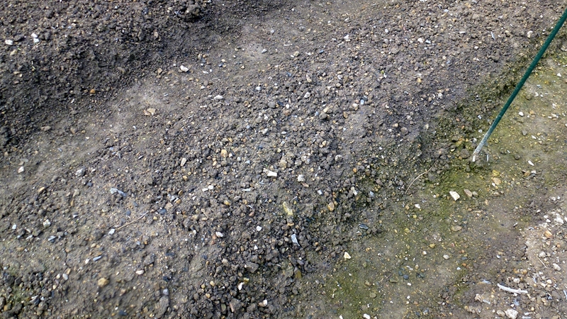 ここは北ダレのため土が北側の防草シートの上に流れ、その上に雑