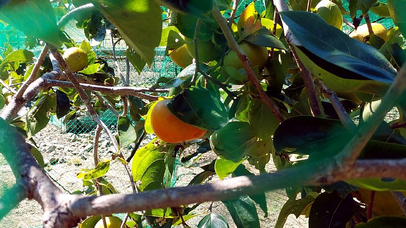 柿はやはり小ぶりだが少しずつ黄色く色づき、何個かは下に