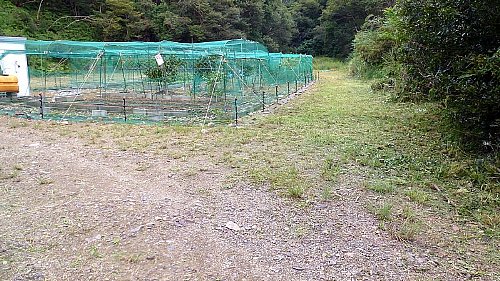 蒔いた種が鳥に突かれないように台風対策で開けてあった網を締め