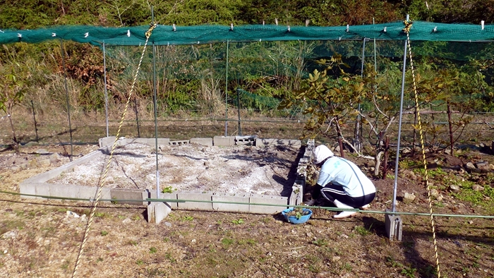 今年はツルありをを蒔くことにしたため、網掛けのなかに新たに骨組