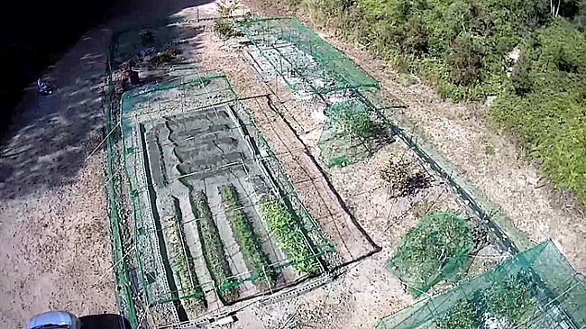 しばらく使っていなかったドローンで三ヶ所の網掛修復なった畑を上空から