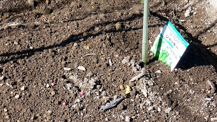 ホウレンソウがうまく育ちそうなので、空いている1畝に残っていた種を