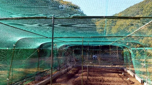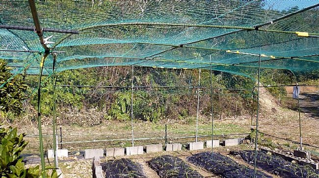 畑の網掛けの骨組みは10年近くになり薄い色のイボ竹に痛みが目立ち